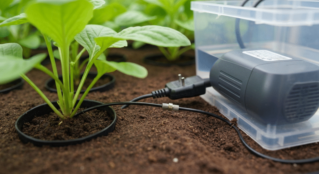 - Simple Timer: A basic digital outlet timer. Cheap, but “dumb.” It will water even if the soil is already wet.
