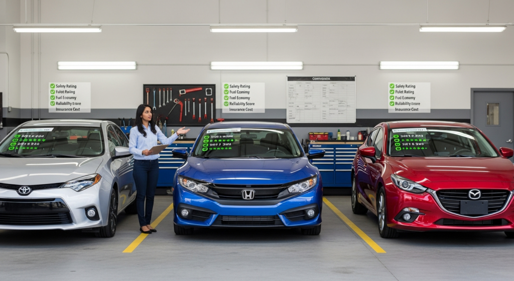 Every article tells you to “buy reliable and safe,” but nobody breaks down what that actually means for your wallet. They recommend Honda Civics without mentioning that certain model years have transmission problems. They push SUVs without calculating the real cost of filling a 20-gallon tank twice a month.