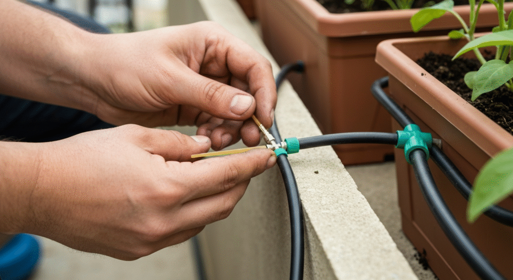 - Run the Main Line: Start from your timer/pump and run the main 1/4-inch tubing along the edge of your balcony. Use zip ties or small hooks to secure it neatly.